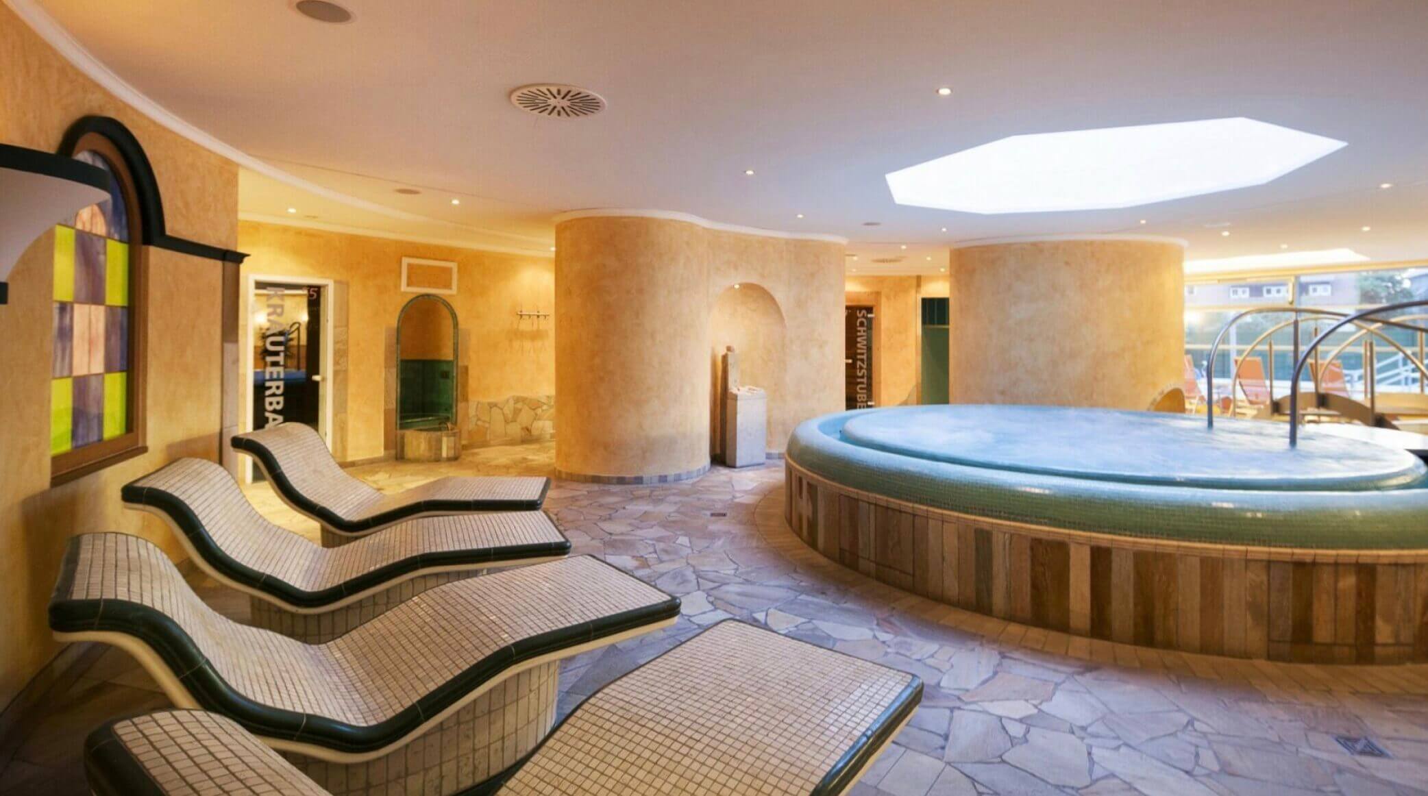 - 4 Innenpools sowie ein Außenbecken mit um die 42 °C warmem Wasser
